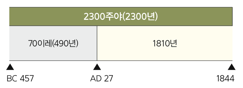 [] 그가 내게 이르되 이천삼백 주야까지니 때에 성소가 정결하게 함을 입으리라 하였느니라.”( 8:13, 14).